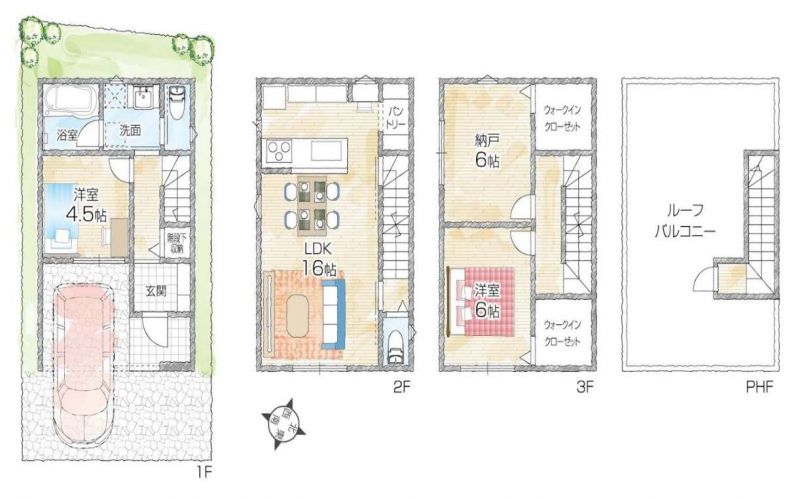LDK約16帖 / 洋室約6帖・約4.5帖 / 納戸約6帖 |